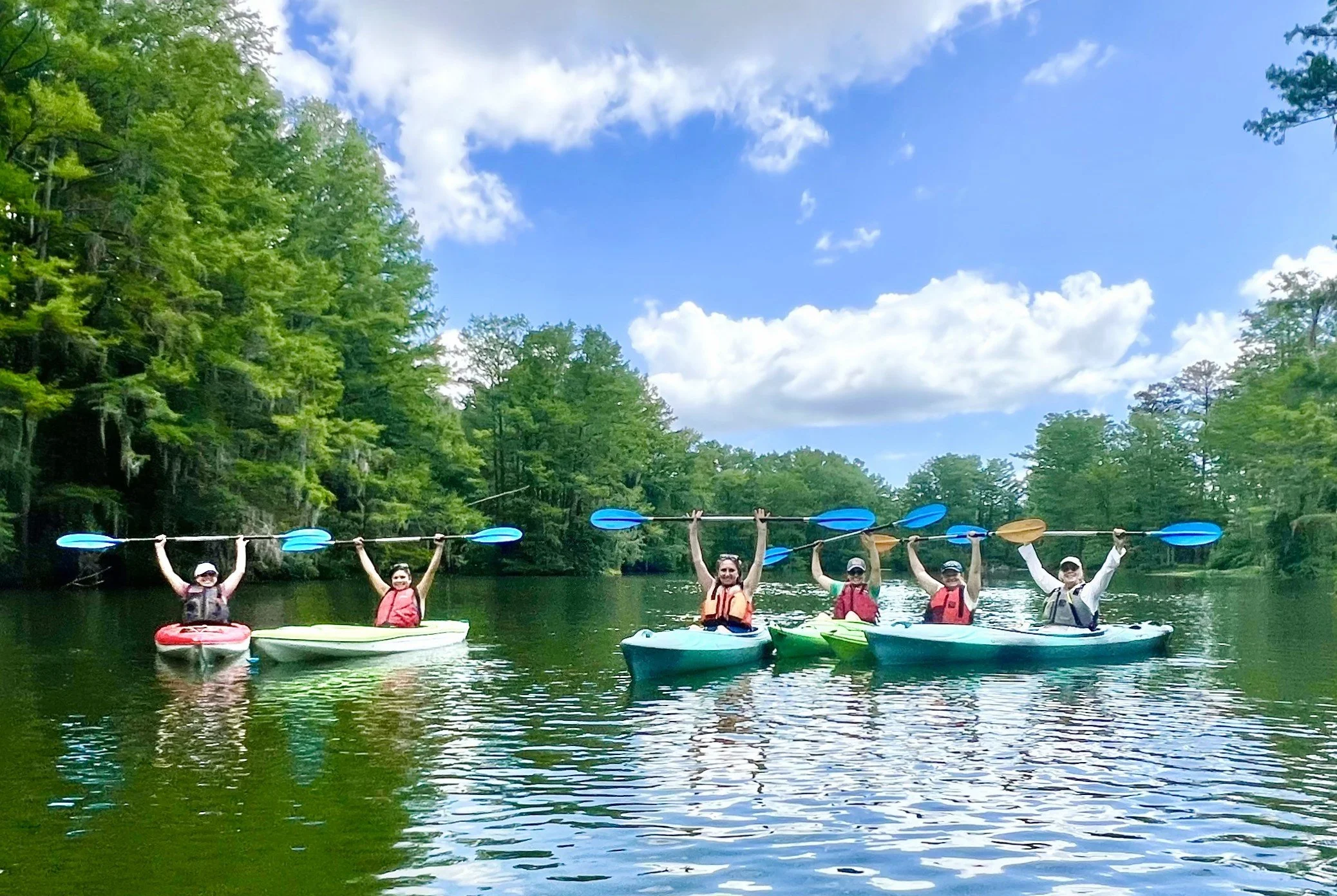 A calming paddle beneath cypress trees